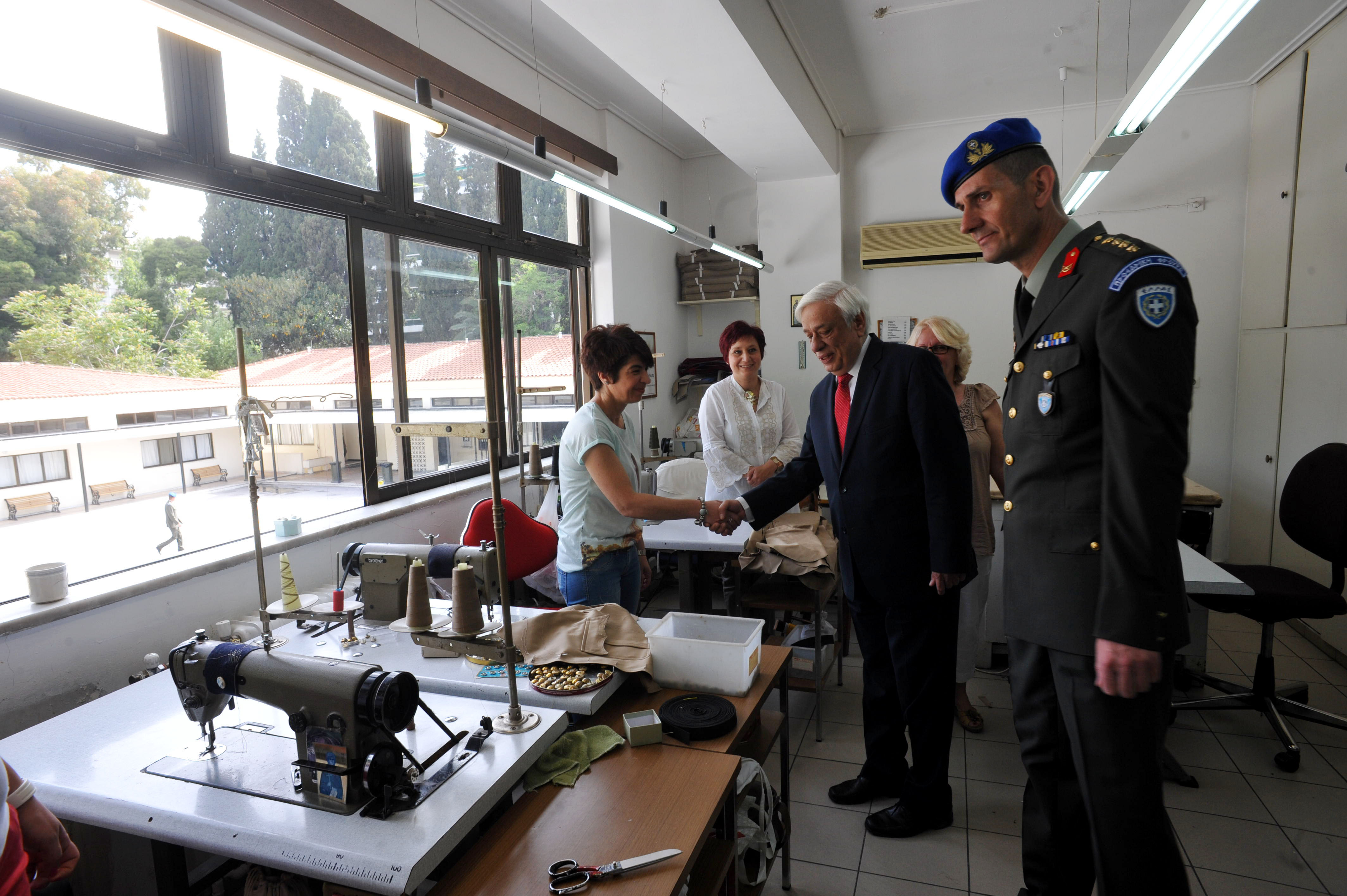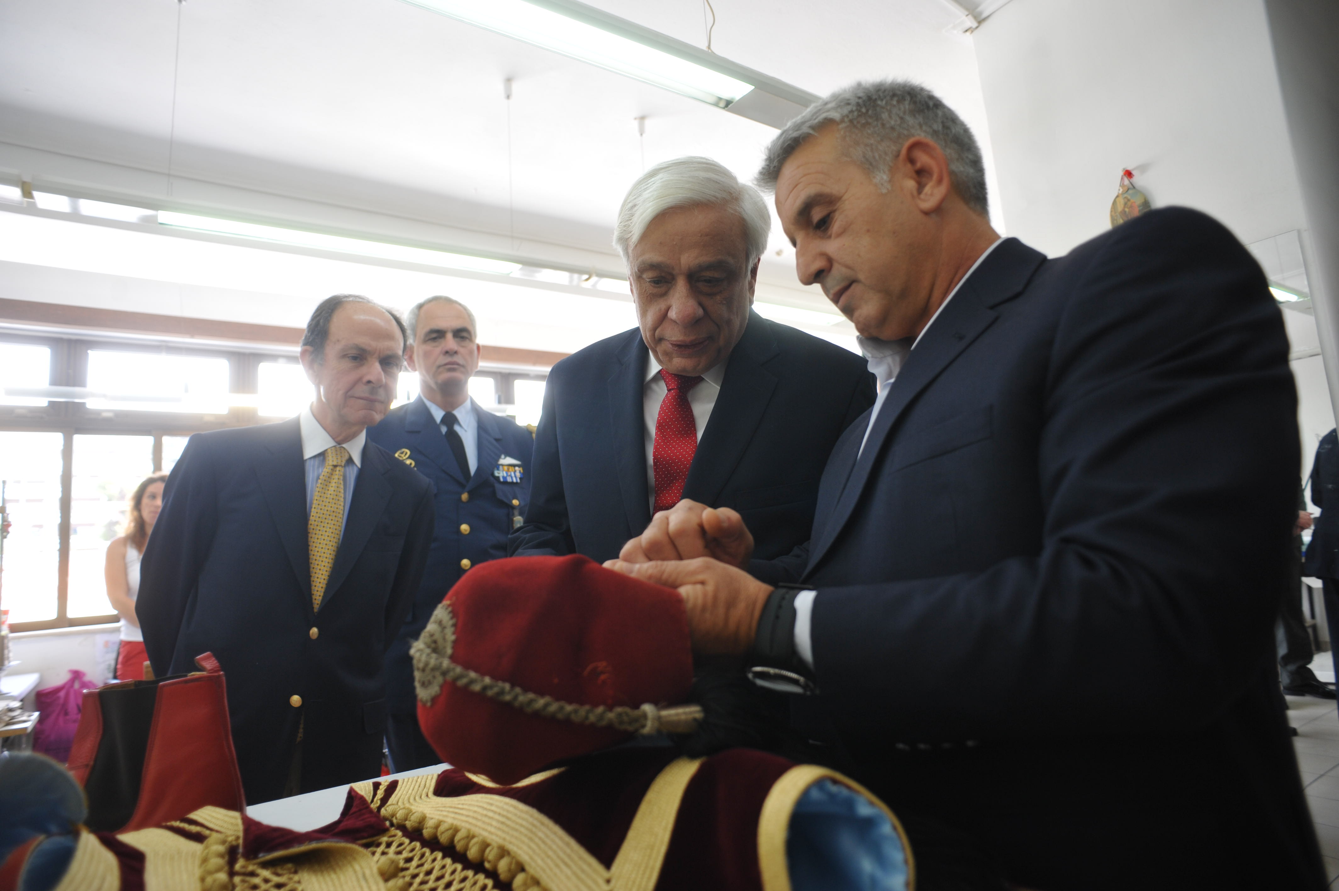 Ο Πρόεδρος της Δημοκρατίας επισκέφθηκε την Προεδρική Φρουρά το πρωί του Σαββάτου (16-05-2015). «Ένας λαός παρακμάζει μόνον όταν ξεχνάει την ιστορία του» τόνισε, μεταξύ άλλων, σε χαιρετισμό που απηύθυνε στους ευζώνους. Ο Προκόπης Παυλόπουλος ενημερώθηκε από τον Διοικητή της Φρουράς για την αποστολή της Μονάδας και στη συνέχεια περιηγήθηκε στους χώρους κατασκευής και συντήρησης ευζωνικού ιματισμού και υποδημάτων. Κάντε κλικ στις παρακάτω φωτό για μεγένθυση: